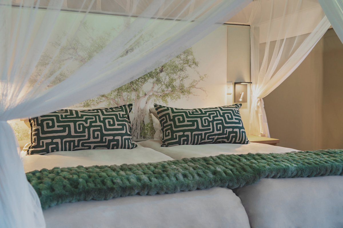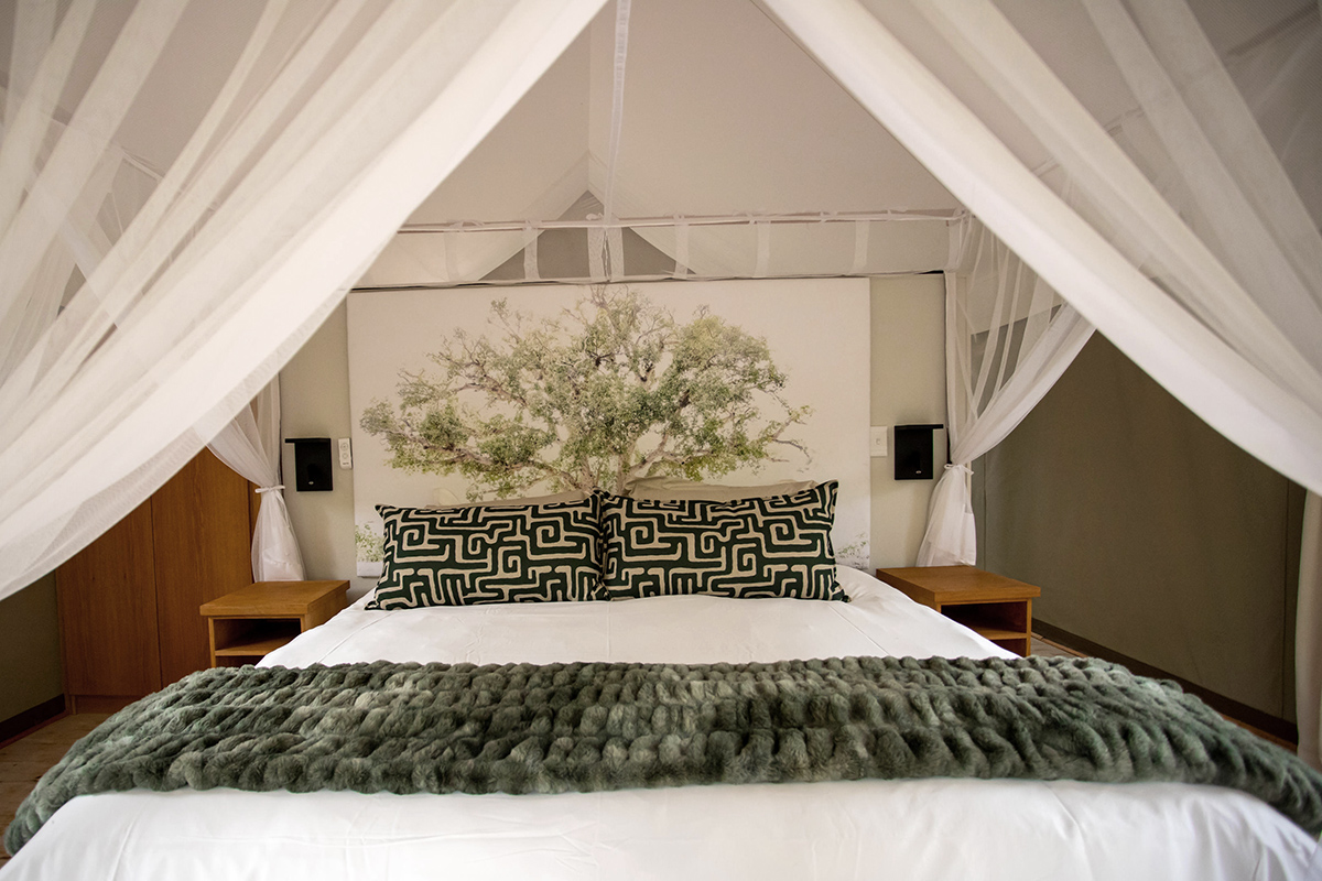 Each of Cape Vulture Lodge’s nine solar-powered tented suites is a safari experience in its own right. Light, bright and very airy, the focus is on clean, elegant design inspired by the wilderness with crisp white linen accented by rich tribal textiles and elegant, minimalistic furnishings offset by the soft, ethereal flow of drapes and mosquito nets. The look and feel is an effortless blend of “Scandi” and safari with uncompromising levels of luxury and comfort that tread lightly on the Earth.
