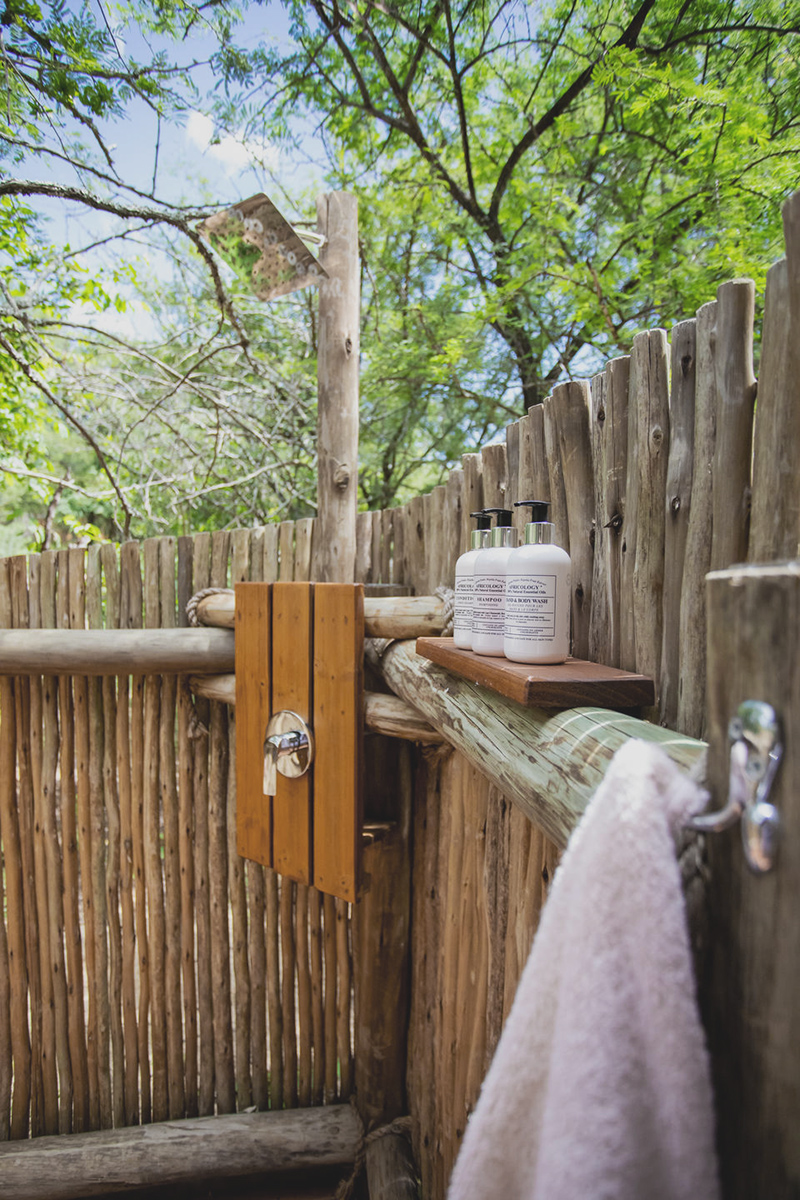 the jaw-dropping views! The en-suite bathroom at the back of each tent also offers an outdoor shower option for the more adventurous guests, as well as twin vanities and exceptional Africology amenities. All tents are solar-powered and have ceiling fans above the bed.and comfort that tread lightly on the Eart