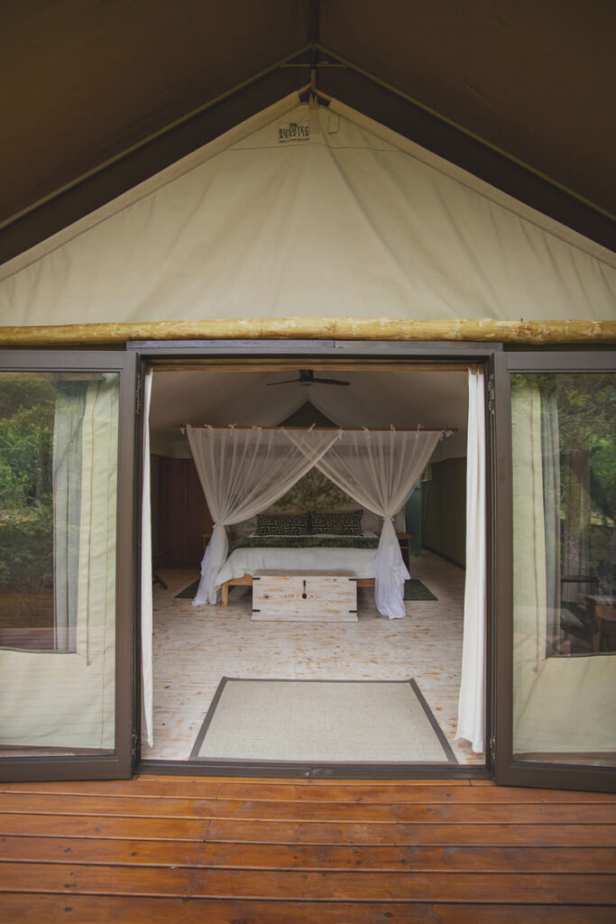 With one king size bed or the option to convert to twin beds, beautiful glass doors ensure maximum natural light inside the tented suites as well as maintaining the jaw-dropping views! The en-suite bathroom at the back of each tent also offers an outdoor shower option for the more adventurous guests, as well as twin vanities and exceptional Africology amenities. All tents are solar-powered and have ceiling fans above the bed. and comfort that tread lightly on the Eart.