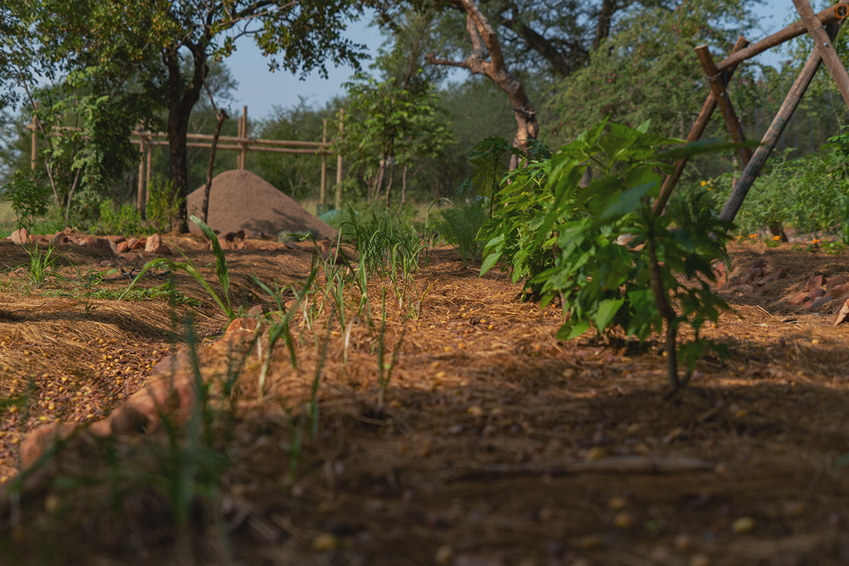 Beneath banana and papaya trees, herbs and vegetables grow side by side. The garden hums with life: bees pollinate, compost steams gently, and the soil breathes again. The harvest finds its way to our lodge kitchen, offering guests a true garden-to-table experience where every meal tells a story of care, health, and connection. But the garden’s impact extends far beyond the lodge. It is a hub for community learning and food sovereignty. Through workshops, school programs, and volunteer initiatives, people from nearby villages gain practical skills to grow their own food, restore their soil, and build resilience against food insecurity.